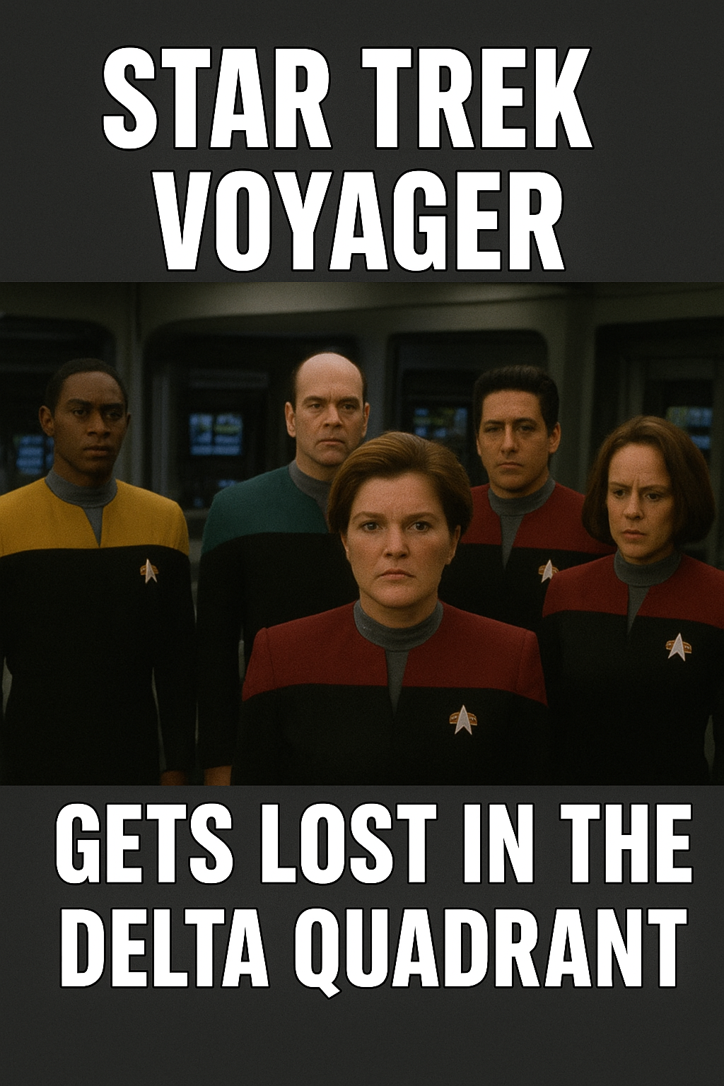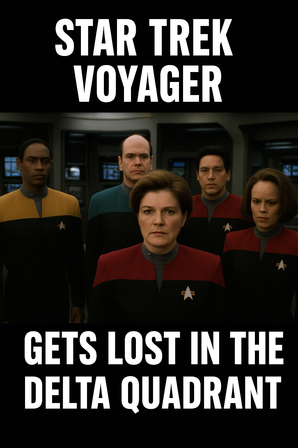 Caption: “The Delta Quadrant is so hostile! Why is it so hard to get home?!”