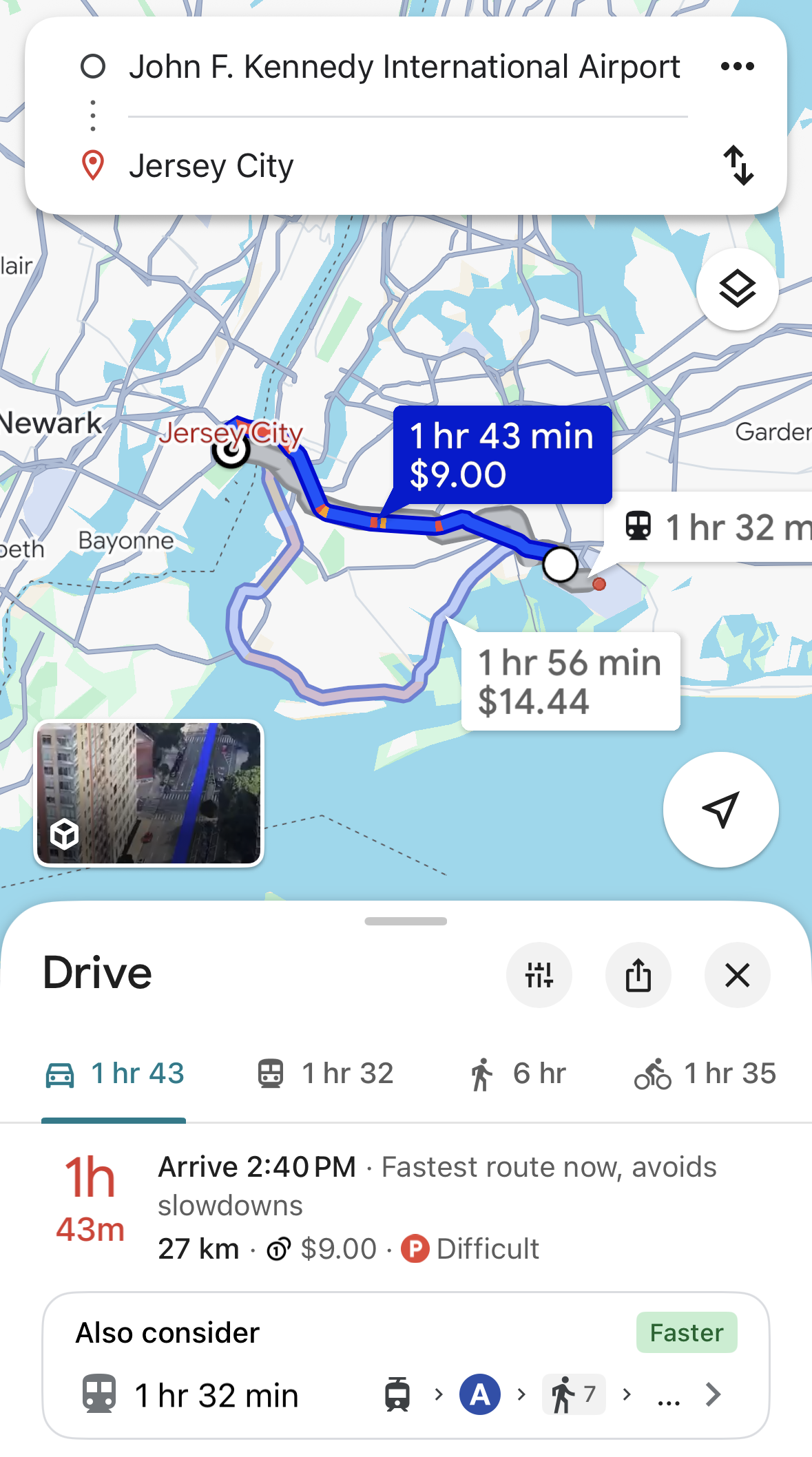 Shout out the 1 hour 45 minute drive from JFK to just over the bridge into Jersey