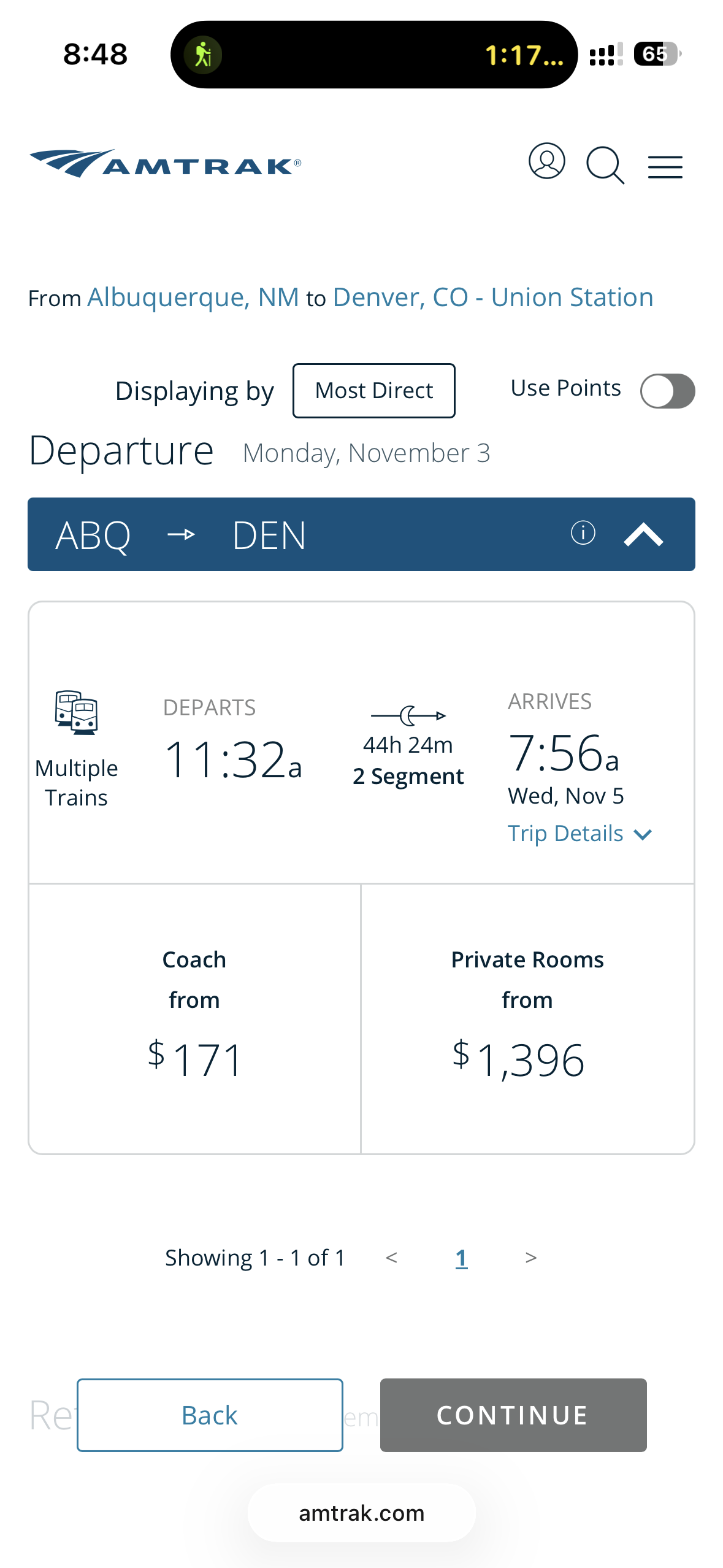 I get that, but I was looking for an alternative to driving 14 hours round trip. Even if the trip took 7 hours each way, I am not driving it. But to go from 7 hours to 45 hours is insane. For a show on the 5th of November in Denver I have to leave Albuquerque on the 3rd, then leave Denver on the 6th to get back home on the 8th. $171 for the cheap seats each way.