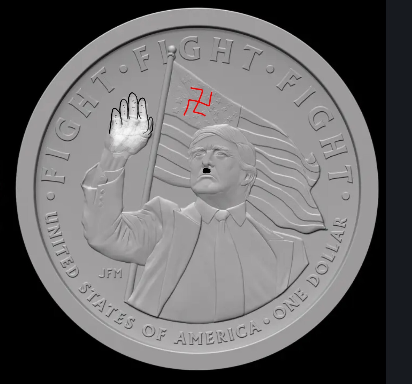 Even the Nazis never put Hitler on a coin, and they were in power issuing ‘reichsmarks’ with swastikas on them for ~13 years, supposedly Hitler said he should not appear on coins until they had won the war.