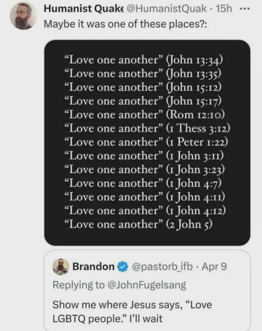 Dude this is what I’m SAYING all the time. The only possible valid collection of the Christian Bible is the parts quoting Jesus. Everything after is fan fiction and blatant manipulation.