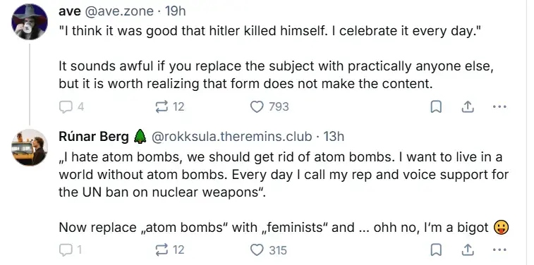 If we’re going to focus on form instead of content, it’s amusing that “if you say mean things about ai then you’re a bigot” is the exact same form as “if you say mean things about Trump then you’re a terrorist.”