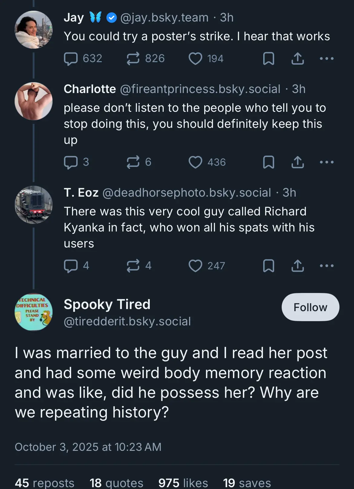Spooky Tired was married to him, and Jay’s posts are reminding her of how lowtax was behaving near the end.
