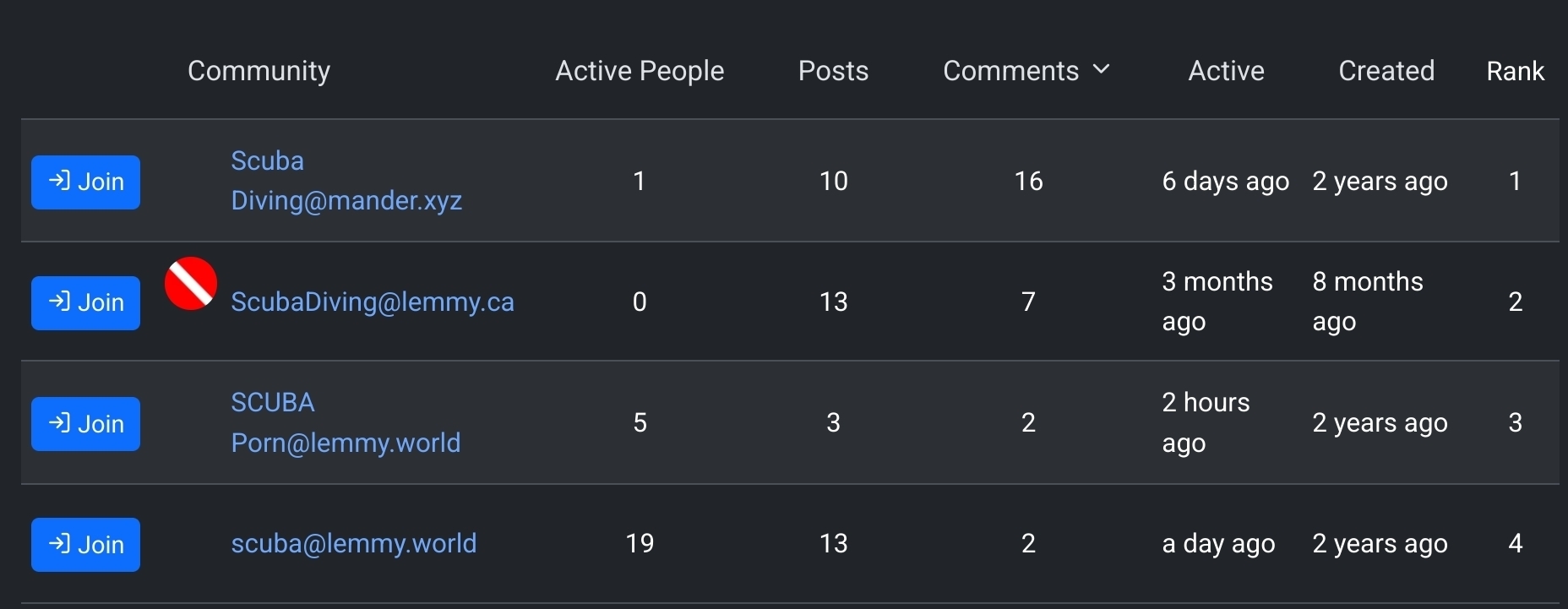 Not that I think Scuba Diving has enough base users on the Fediverse to begin with at this point. Most of those users subscribed are likely abandoned accounts.