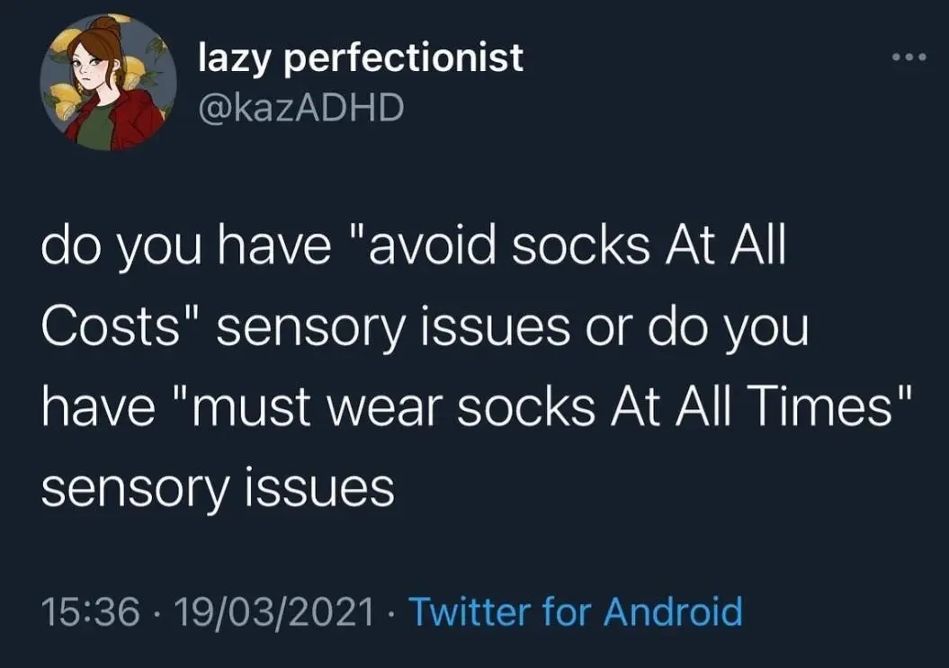 It’s not a sensory issue - I just like wearing socks. Not everything needs to be pathologized.