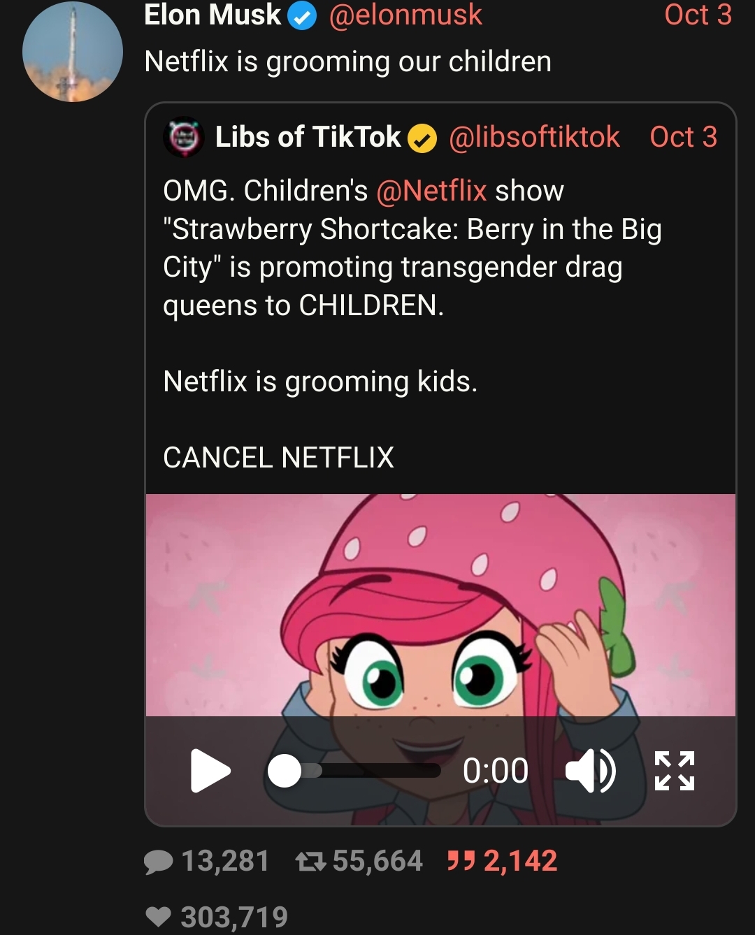 X boss and free speech stalwart Elon Musk has cancelled his Netflix account amid a right-wing backlash to a trans-inclusive show that was cancelled more than two years ago