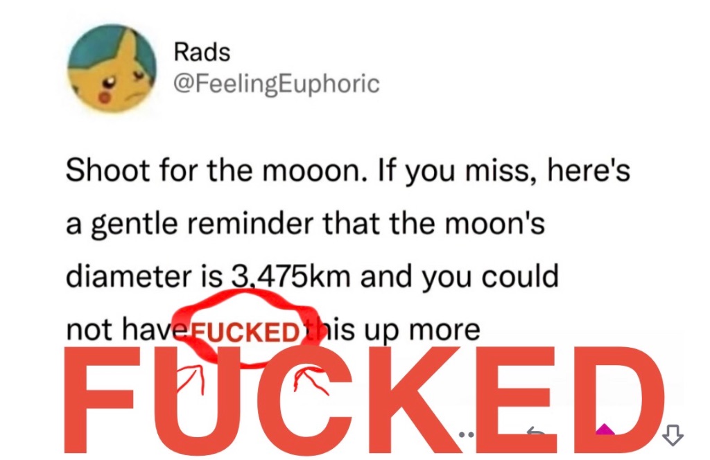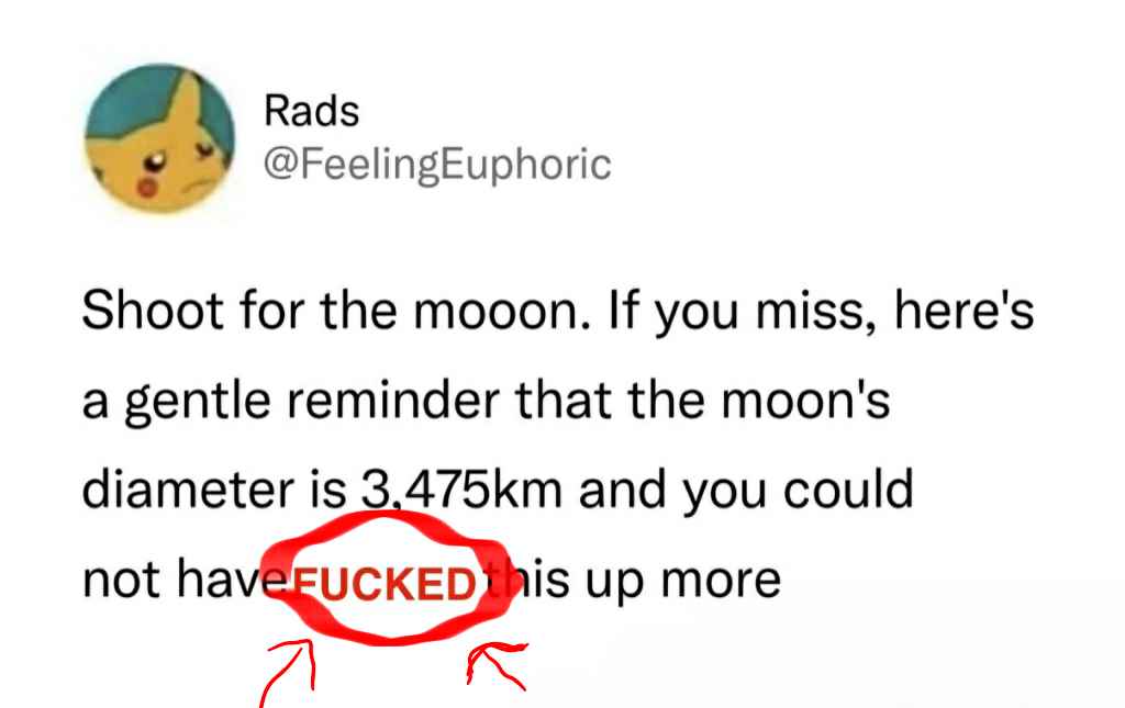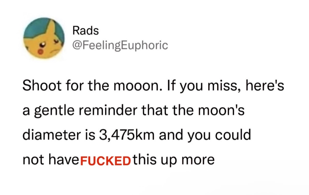 Ya but the moon covers at best only about 10 ppm of the sky’s area so given a random direction within the hemisphere defined by the sky in which the moon is visible and traveling in a straight line you have a roughly 99.9990% chance of missing so that’s understandable really.