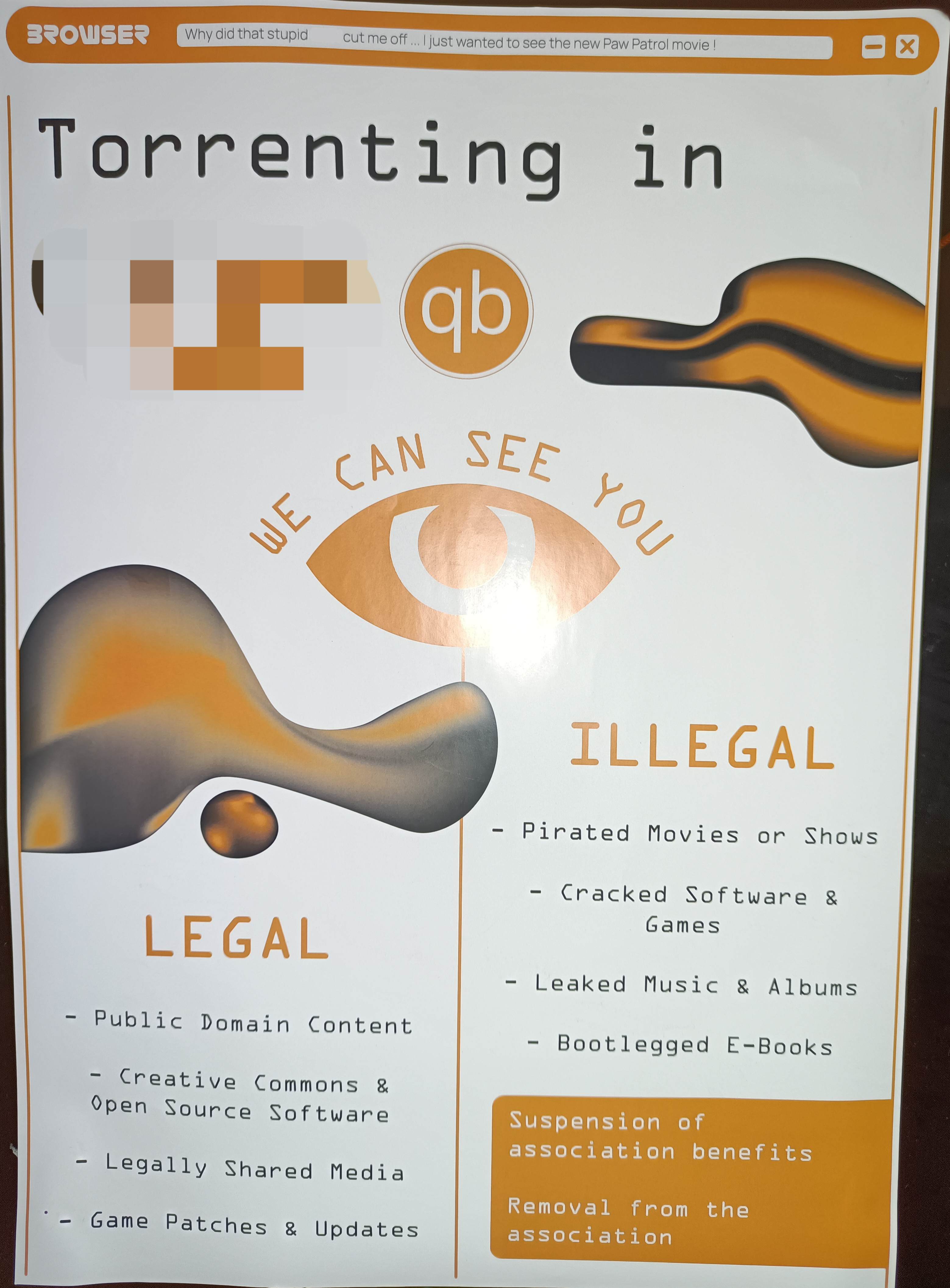 arrow-up1634arrow-down1imageThe internet provider on my dorm explicitly allows legal torrentsu/lukmly013 💾 (lemmy.sdf.org)@lemmy.sdf.org to Mildly Interesting@lemmy.worldEnglish · edit-27 days agomessage-square168linkfedilink