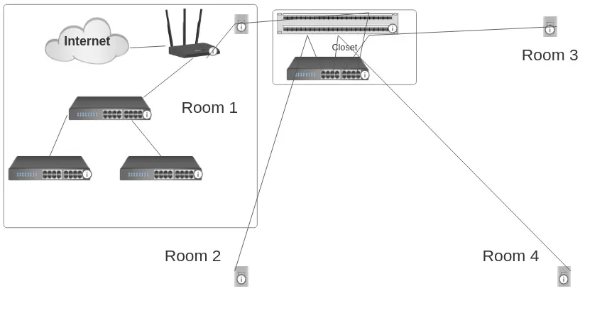 Internet -> Router -> Switches -> Client DevicesI wasn’t sure, since when trying to find devices, the desktop seems to be isolated from everything else.