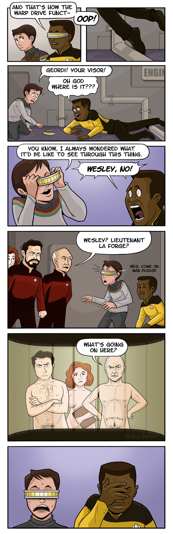 Forcing Geordi to look holodeck CCTV will cause PTSD on him.