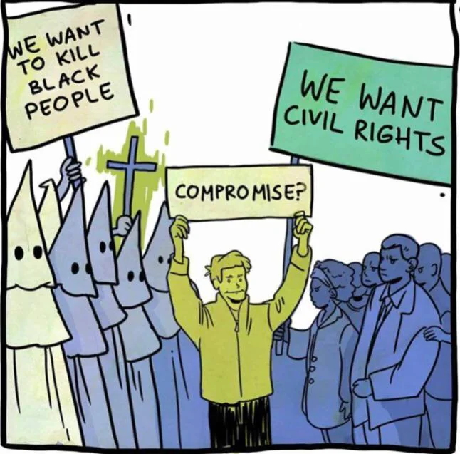 That’s like “there’s no ethical consumption under capitalism so I’ll get an Amazon Prime subscription” thinking.