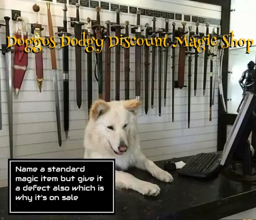 Sir Mix-a-Lot (unrelated) is a traveling potion salesman who shows up for my party at suspiciously specific times, and generally has discounted potions specifically tailored for whatever they happen to be doing at the time. For example, if they need to be really strong, he’ll have a bottle of Sir Flex-a-Lot’s Magical Muscle Maximizer, which does increase the strength of one’s muscles, but not of their bones or connective tissue (it was designed to be used only in bodybuilding competitions), so whenever the drinker does a STR check, they must also make a CON saving throw to avoid breaking a bone or tendon. Need to decipher an ancient text? Try Sir Scripts-a-Lot’s Polyglottal-in-a-bottle, which will let you read unknown languages, but also comprehend all unknown languages, even those of the plants and animals around you, making it very difficult to concentrate on any one thing. (inspired by https://www.smbc-comics.com/comic/springtime)