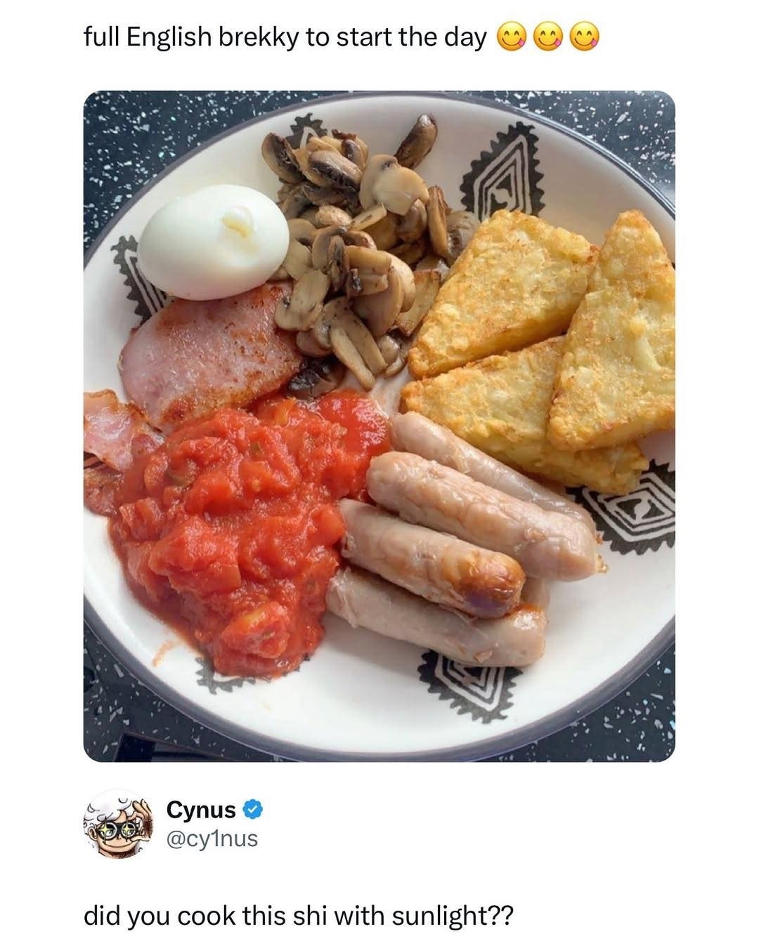 Yeah this whole thread feels like either I’ve been dropped into a parallel universe or there’s something wrong with my monitor settings. Is it really that weird to not want your food totally blackened all over? The bacon and hash browns in particular look like they was taken out at exactly the right moment, just as they’re showing the first spots of browning. I wonder if maybe the details aren’t showing up clearly on mobile devices or something and people are reacting to that?