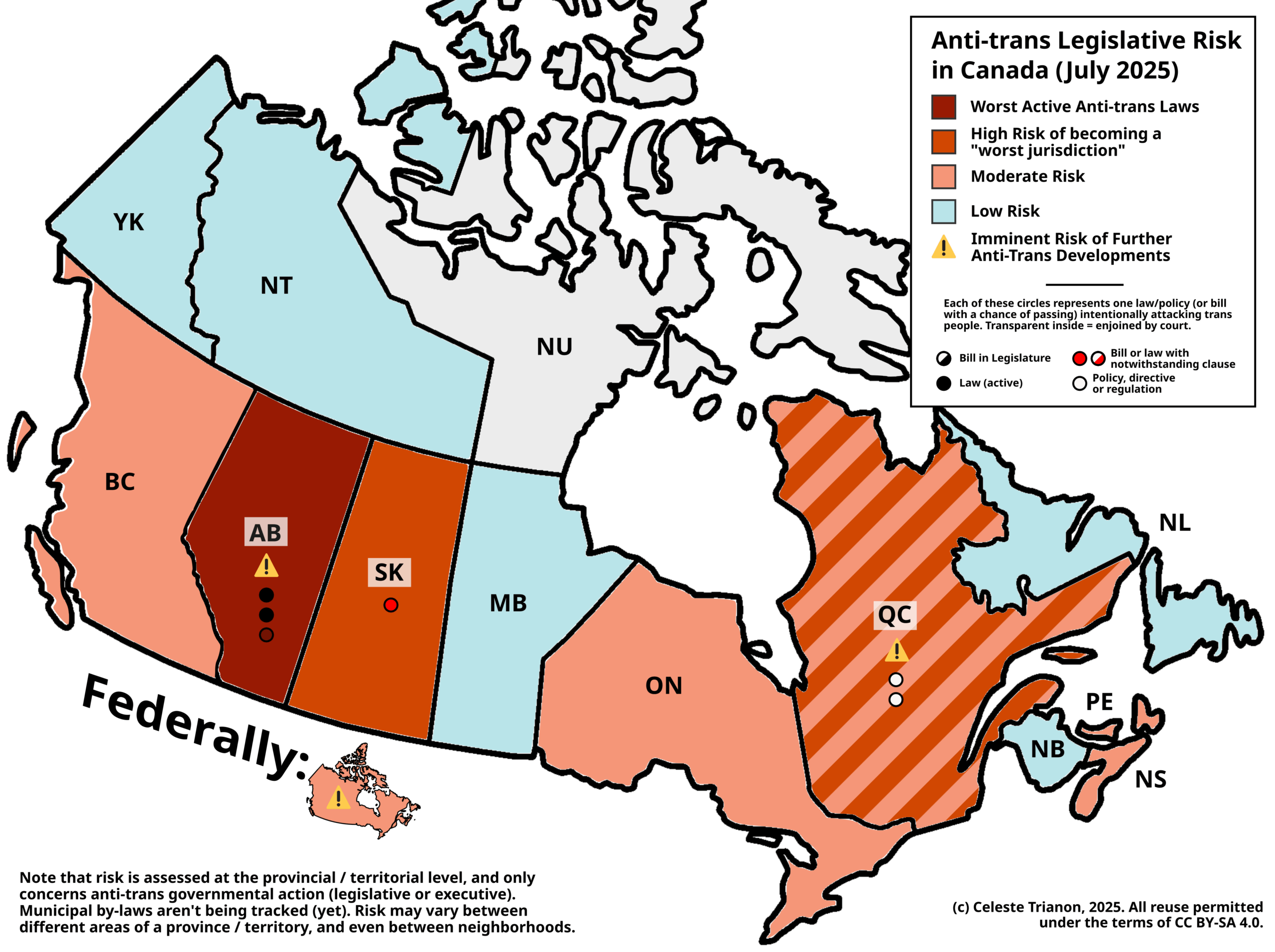 It feels a bit weird but unsurprising seeing Ontario be at moderate risk. Then again, the current government has 0 interest in trans issues (at least to move in a positive direction)