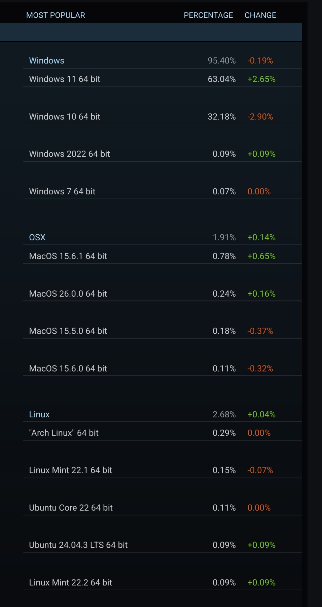 Looks like 1/3rd of windows gamers still on win10