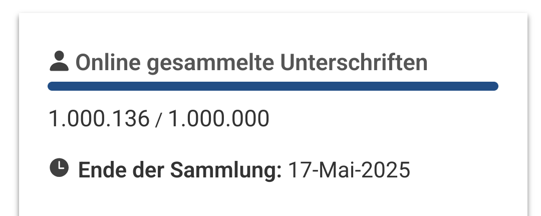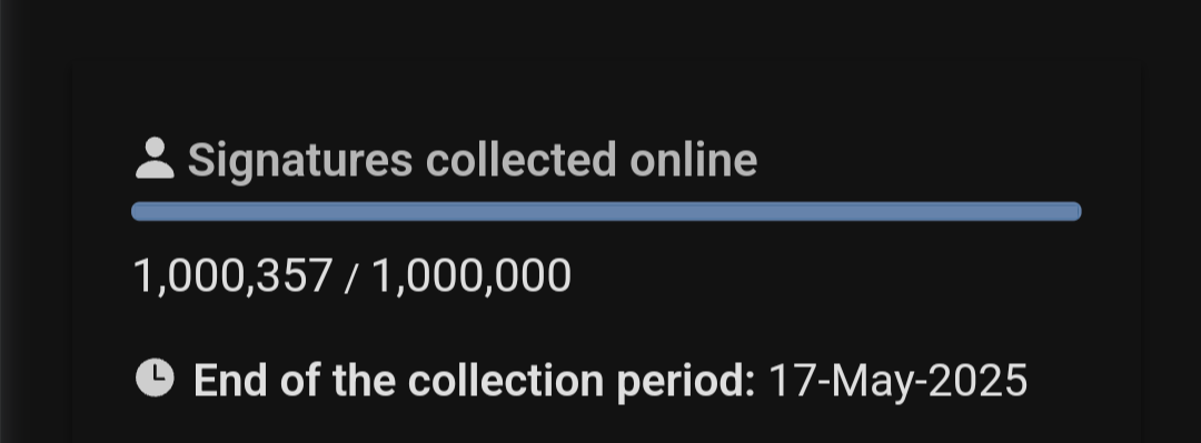 Now the signatures have to be verified by each member country’s authorities. Unverifiable support may bring the petition back under 1M signatures. Sign if you haven’t! Keep spreading!