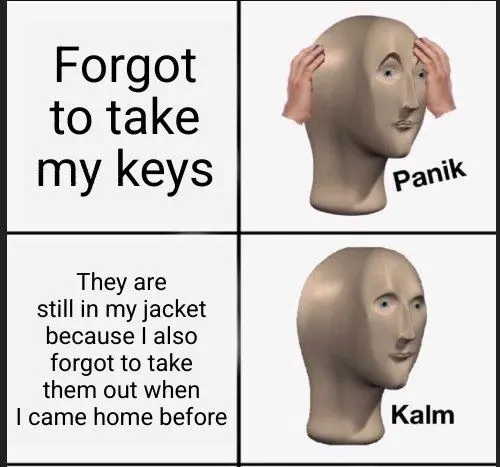 it’s missing the third panel: My jacket is in my locked house because I forgot it before closing the door - Panik