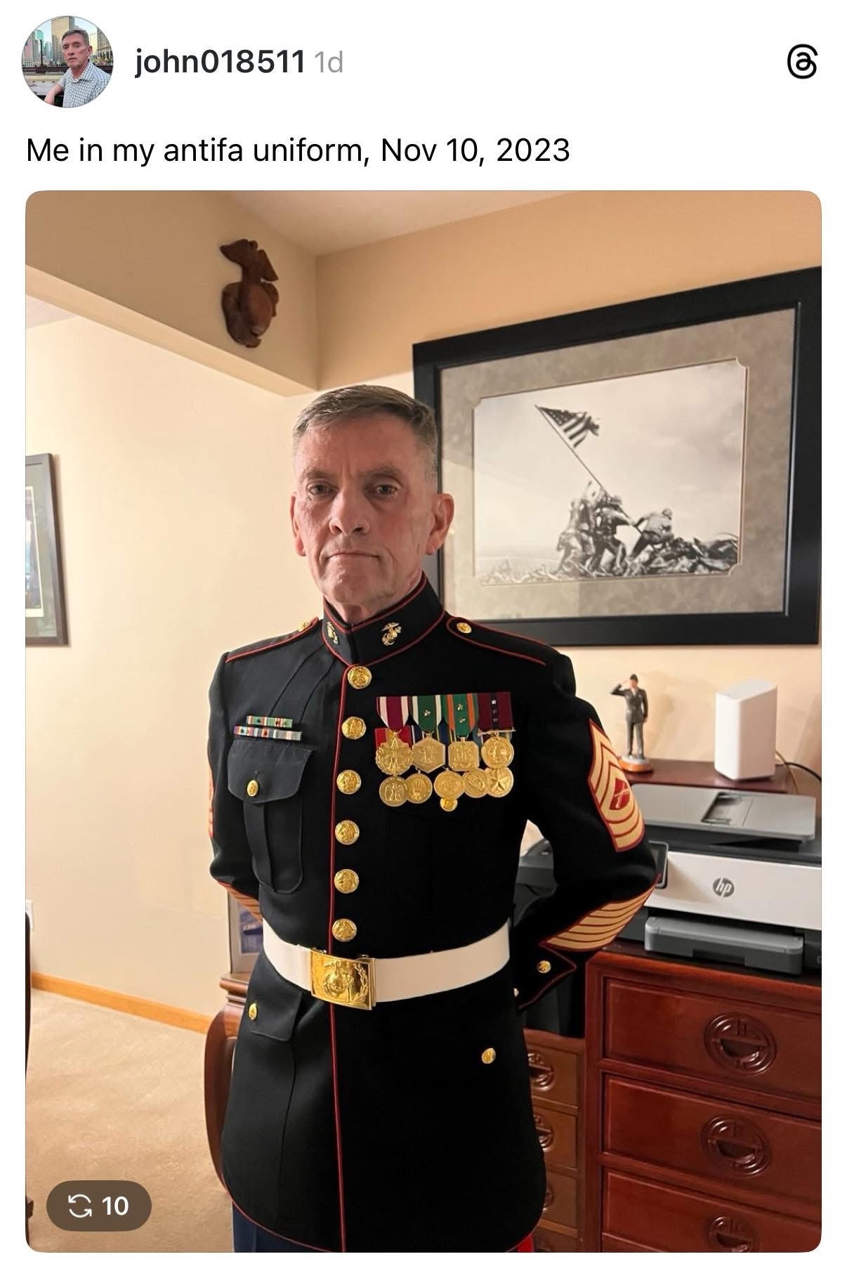 The joke is the subversion of expectations. Under the caption “Antifa uniform”, you would normally expect something less “official” or formal, since the public image is one of generic Anti-establishment rebels.