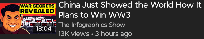 Those evil commies are planning to colonize and enslave the entire world!!! Pure fucking projection I can’t believe I used to listen to The Infographics Show.