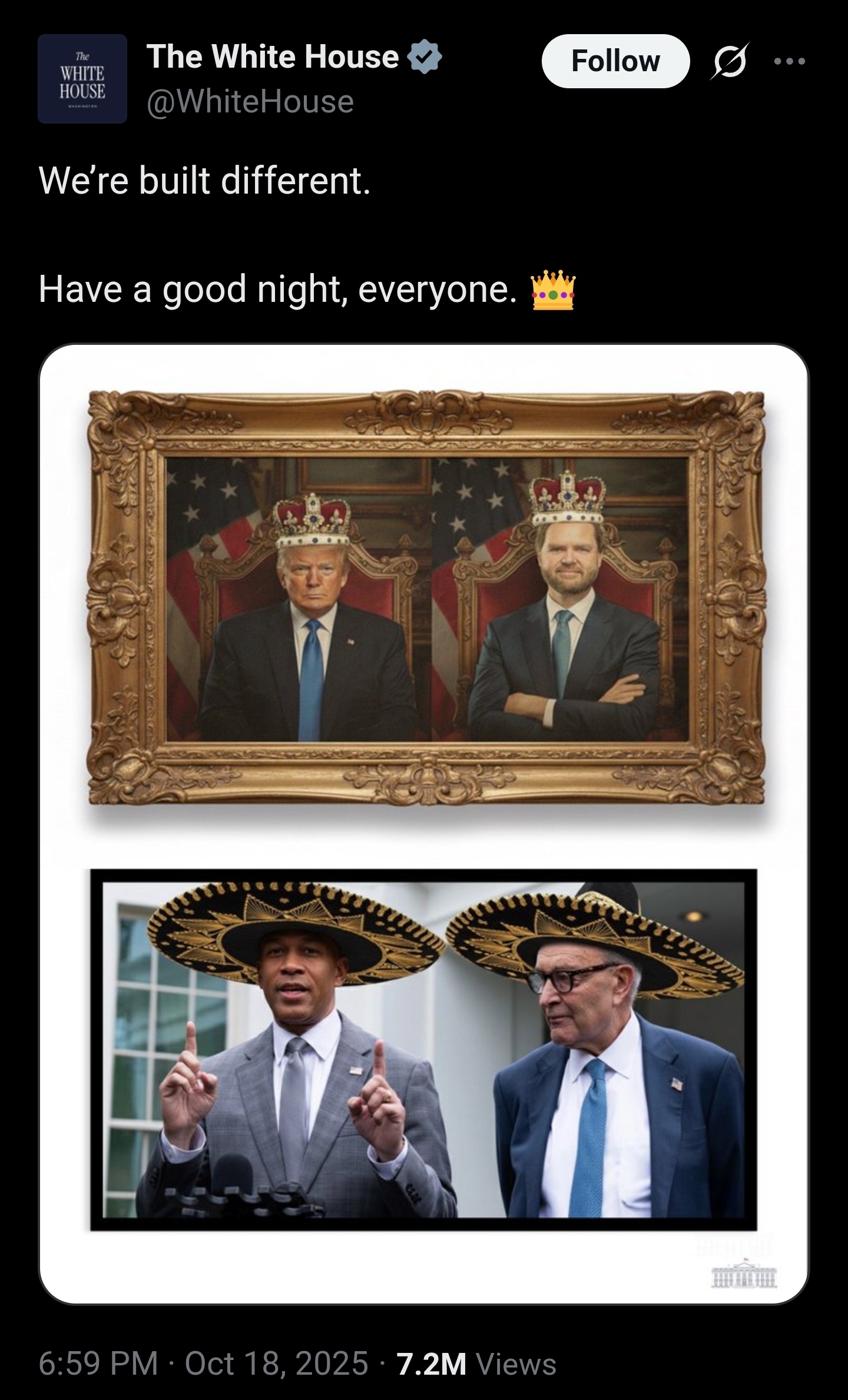 The official White House account tweeted this…