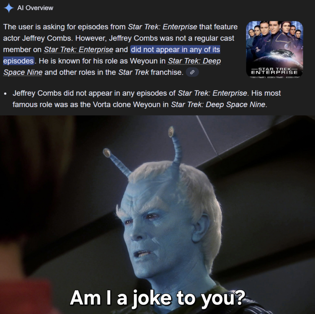 Wait, there were other actors BESIDES Jeffery Combs in Enterprise and DS9?
