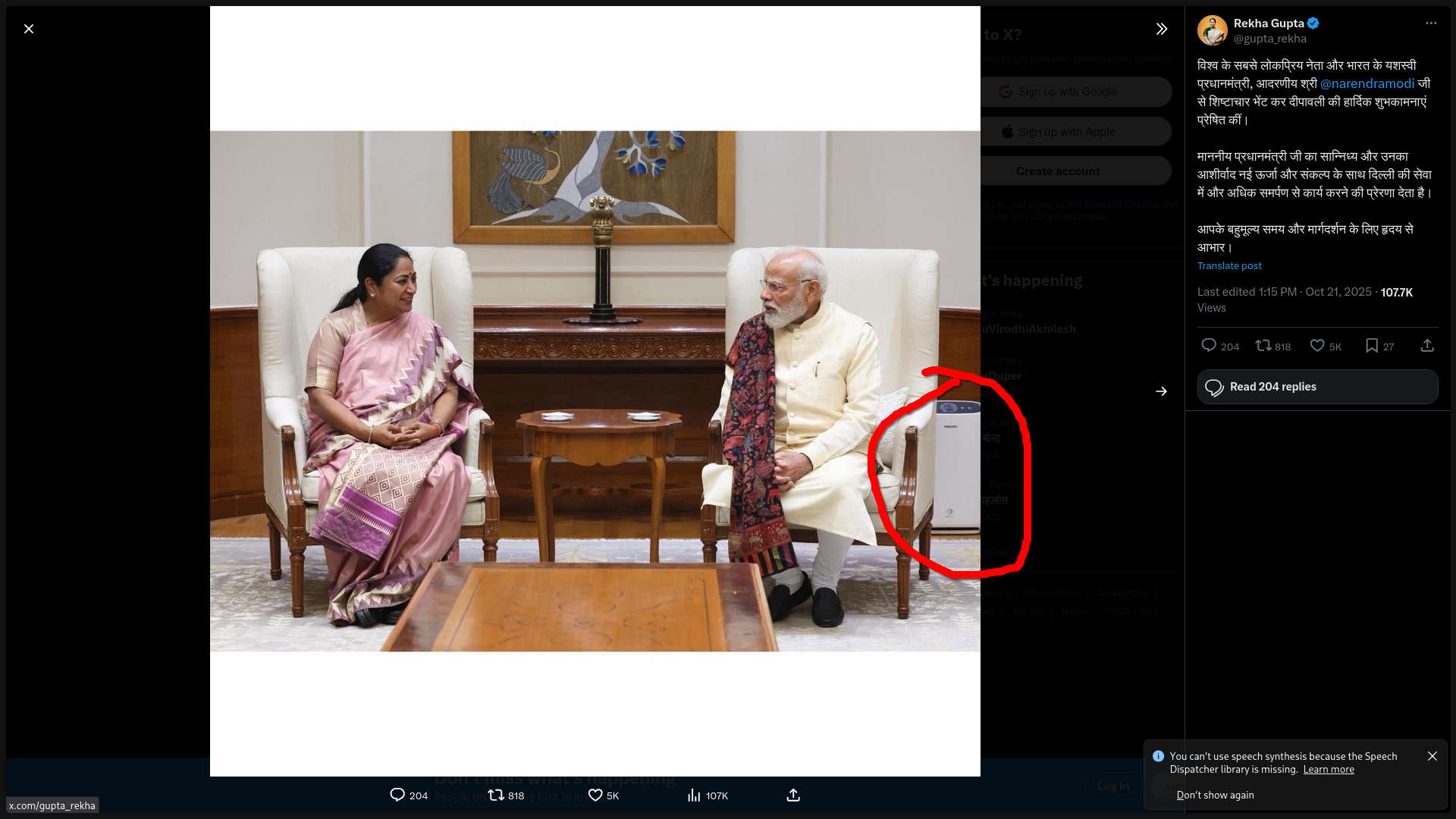 Update: Our Prime Minister with Delhi’s Chief Minister with air purifier while they encourage people to burst more crackers.