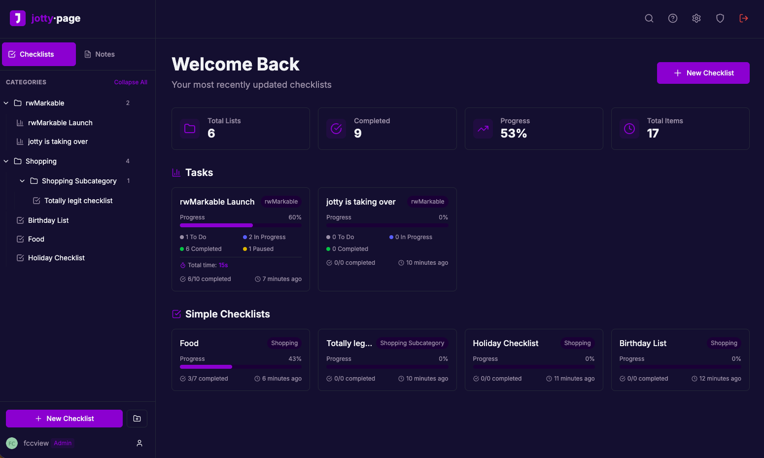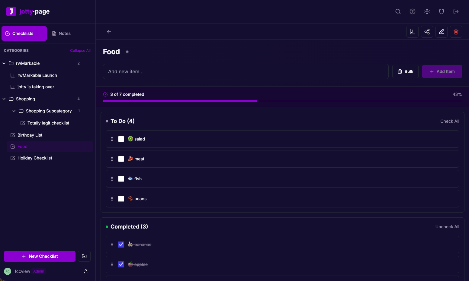 - Sharing: Share checklists or notes with other users or publicly with shareable links.