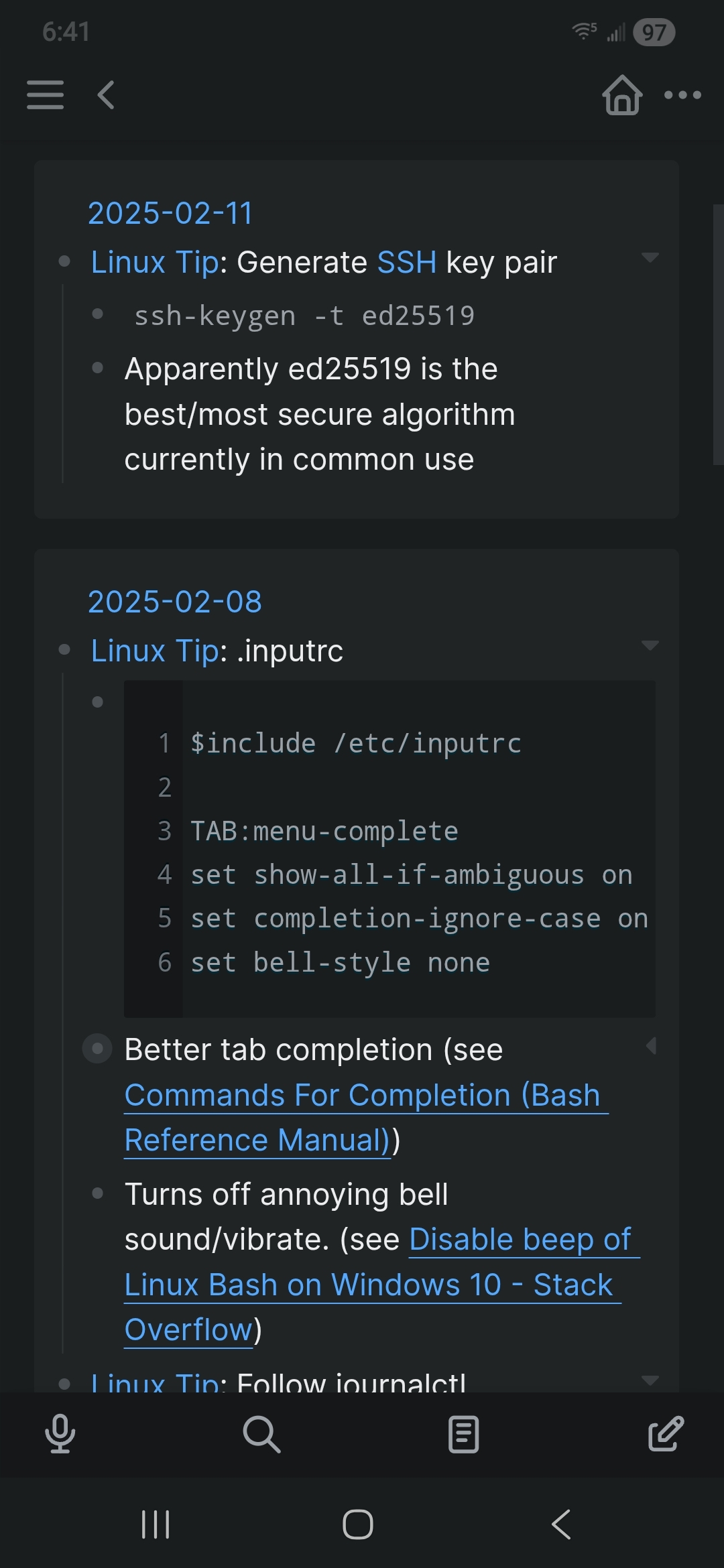 For example, if I have a daily journal, I can say