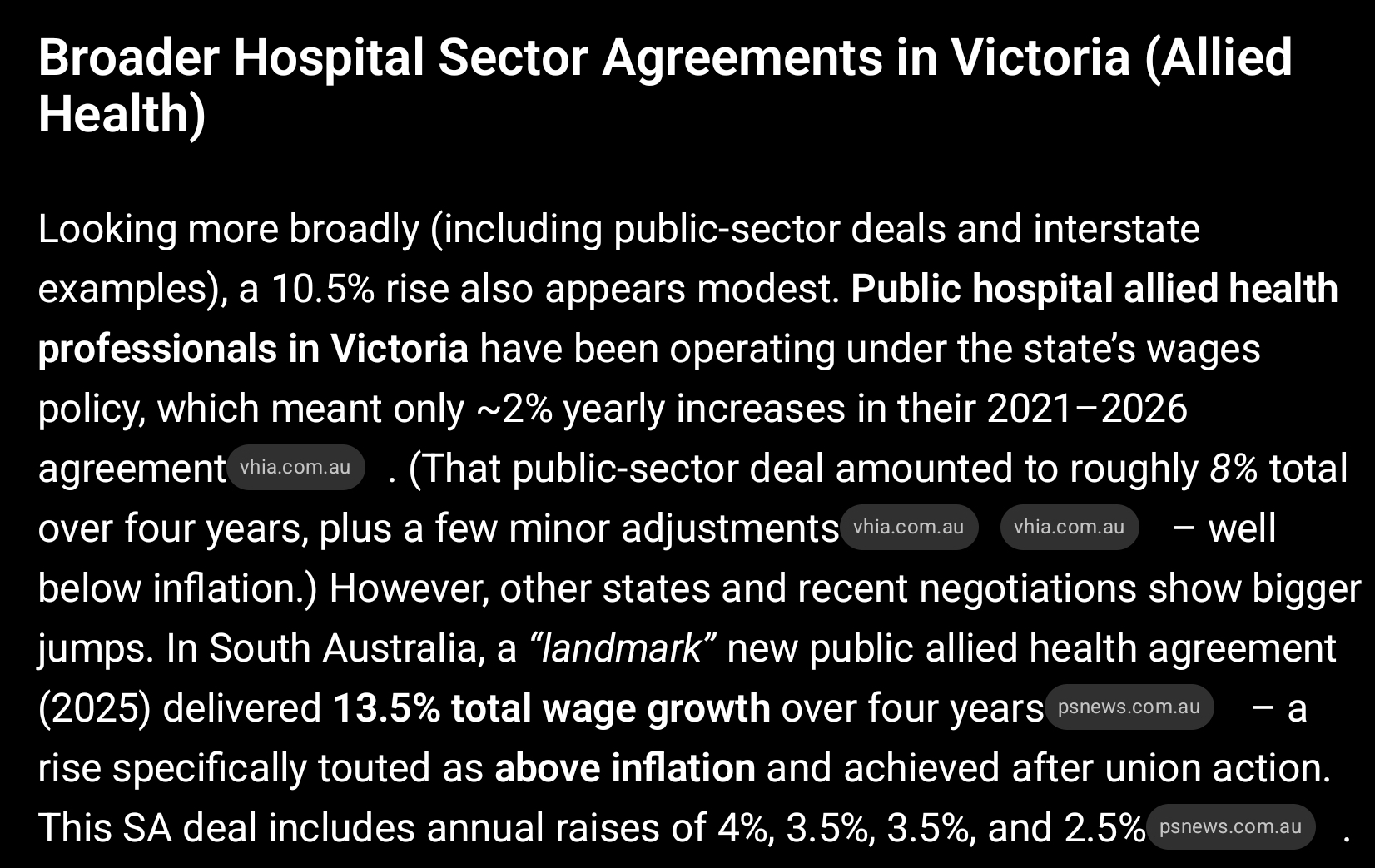 Na chatgpt good, handy, I fed it my current Employee Enterprise Agreement and the previous 2, and asked via deep research for a comparison of them all, against comparable businesses to see if our pay increases were fair. Ive got a meeting today to argue for increases, after ChatGPT found that we were a little under. What a brilliant tool!