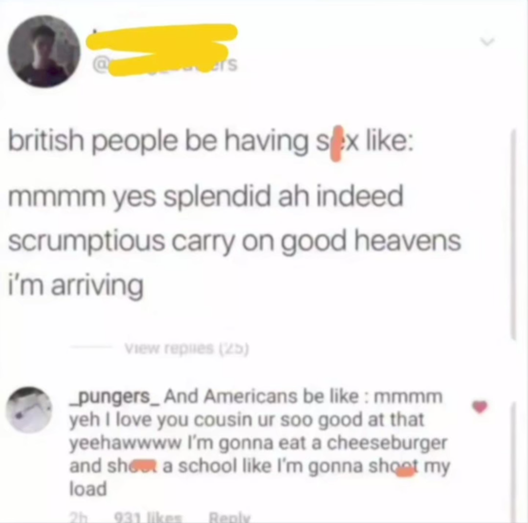 arrow-up1458arrow-down1imageUK vs US sexooli3@sopuli.xyz to Funny@sh.itjust.works · 29 days agomessage-square101linkfedilink