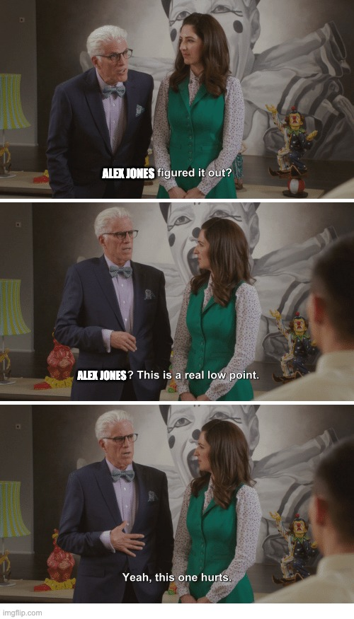 Michael: “Alex Jones figured it out? Alex Jones? This is a real low point. Yeah, this one hurts.”
