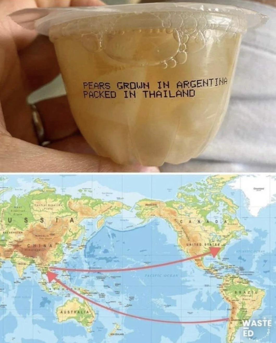 Really, really irresponsible use of resources. Especially if these pears are shipped by sea. Then it’s even worse.