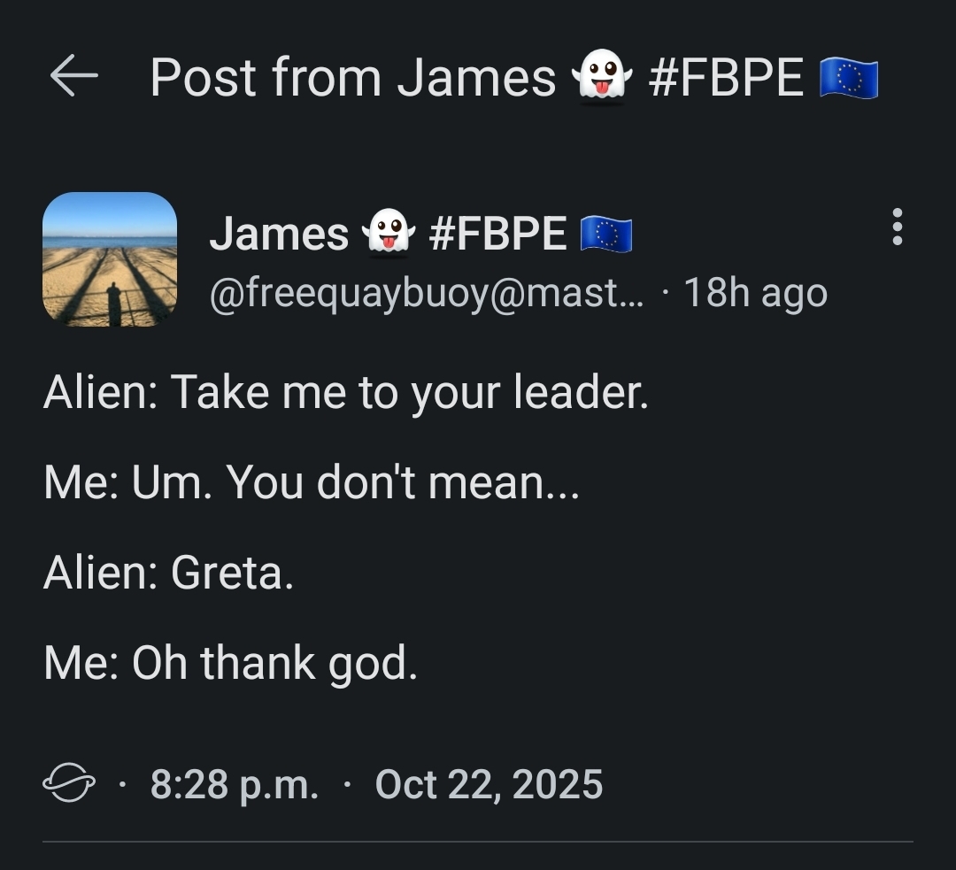 Have you seen the state Jordan B. Peterson is in right now? He’s absolutely not ready for space aliens. Dude’s too invested in four day harmonous time cubes and Women as arch-typical Australian dragons.