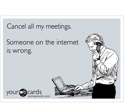I’m here because they’re something worthwhile and enjoyable in chatting people online, and that mode of engagement is toxic (to ME, it does emotional harm to ME), and damages this space that I care about