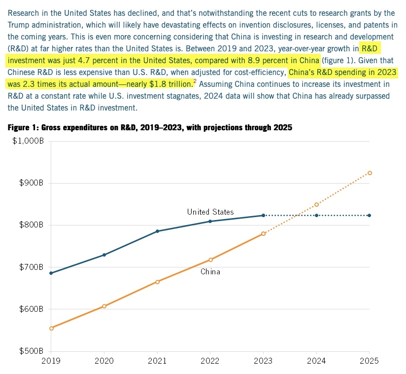 When you further consider that a significant portion of U.S. research, up until this point, has been invested in projects designed to produce academic publications and not technological advances, the picture is even more bleak.