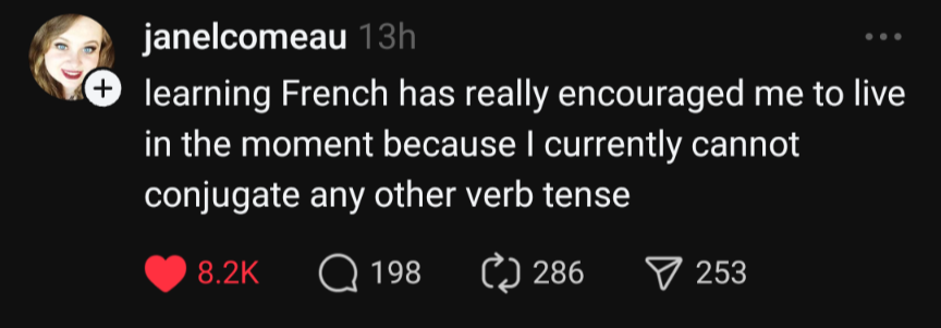 🖼️ C’est le présent (direct link), posted in Nonpolitical Twitter (👍258 👎2)