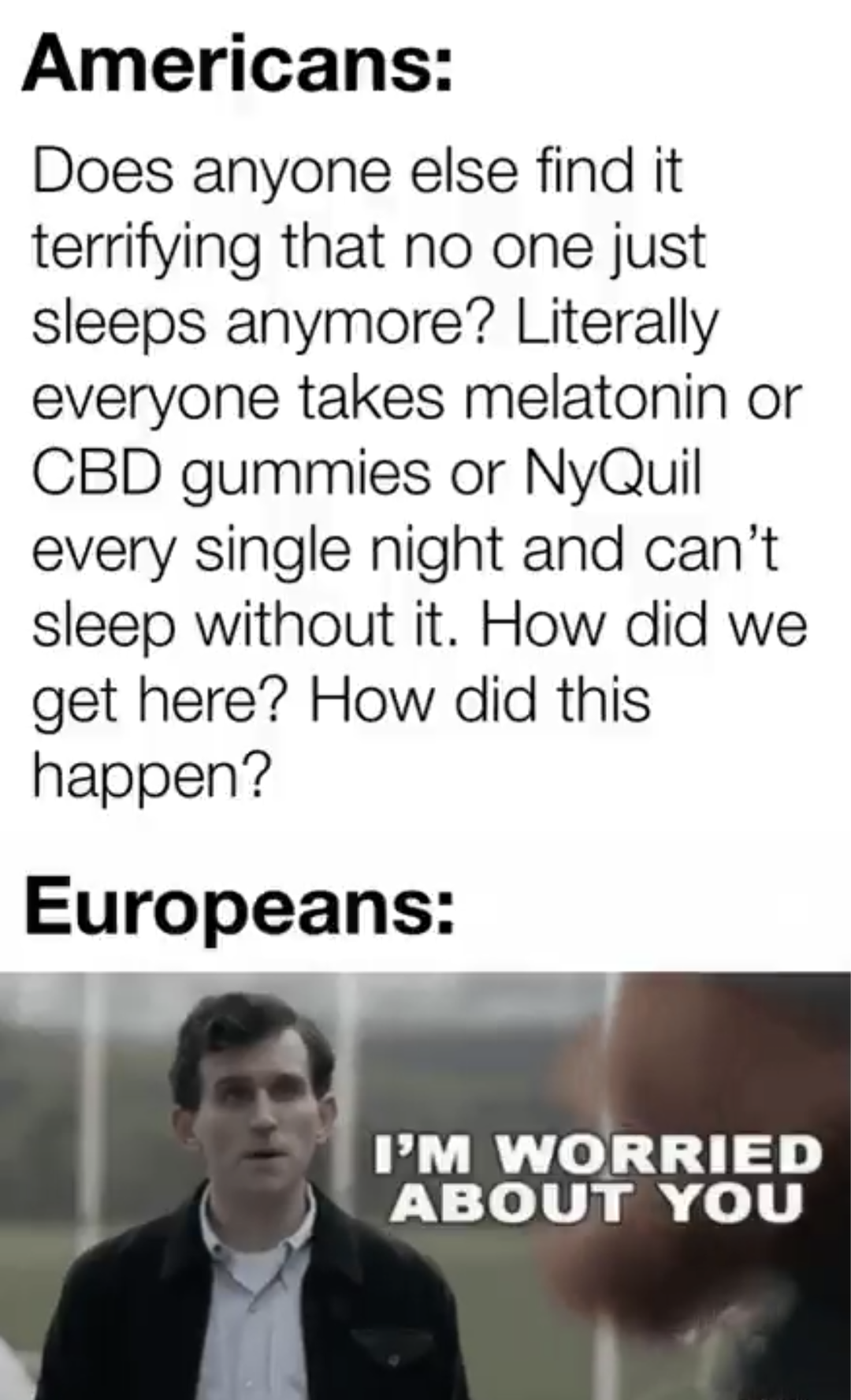 Anxiety. Americans are an anxious society. And that is with good cause, no social safety net, work 2 jobs to get ahead and a mass shooting every goddamn day.