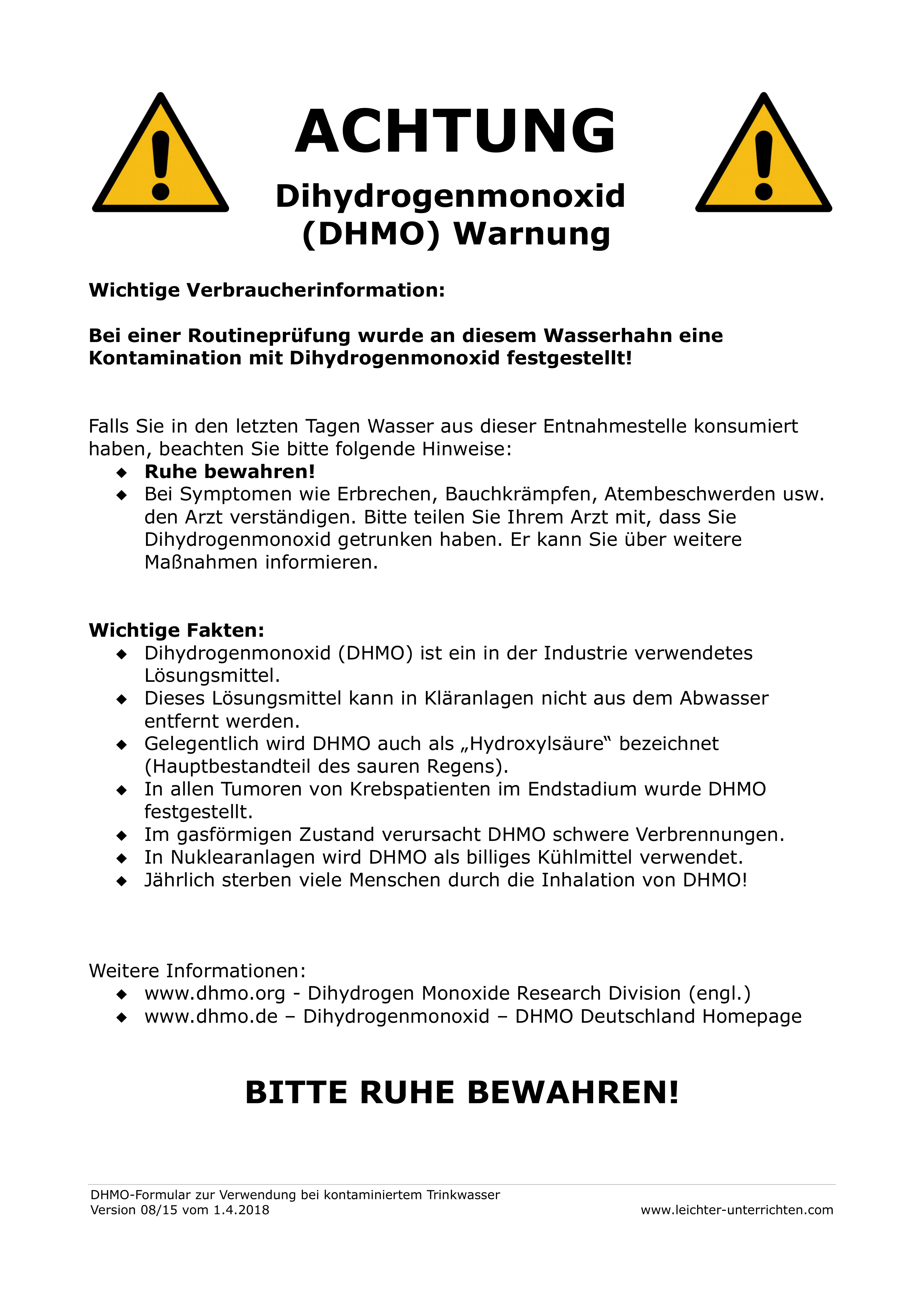 Einfach überall DHMO-Warnplakate aufhängen.