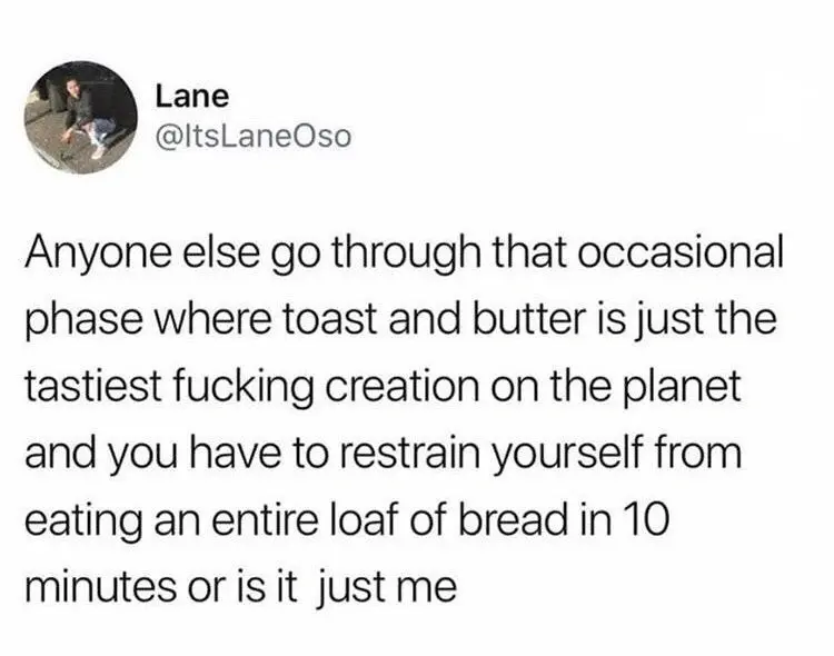 Phase? You mean the craving for good butter toast is going to end at some point?
