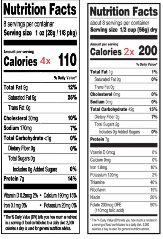 Here is just the cheese and macaroni, no milk, flour (1tbsp), butter, peppers etc. so not even close with dramatically higher protein but close to half the carbs.