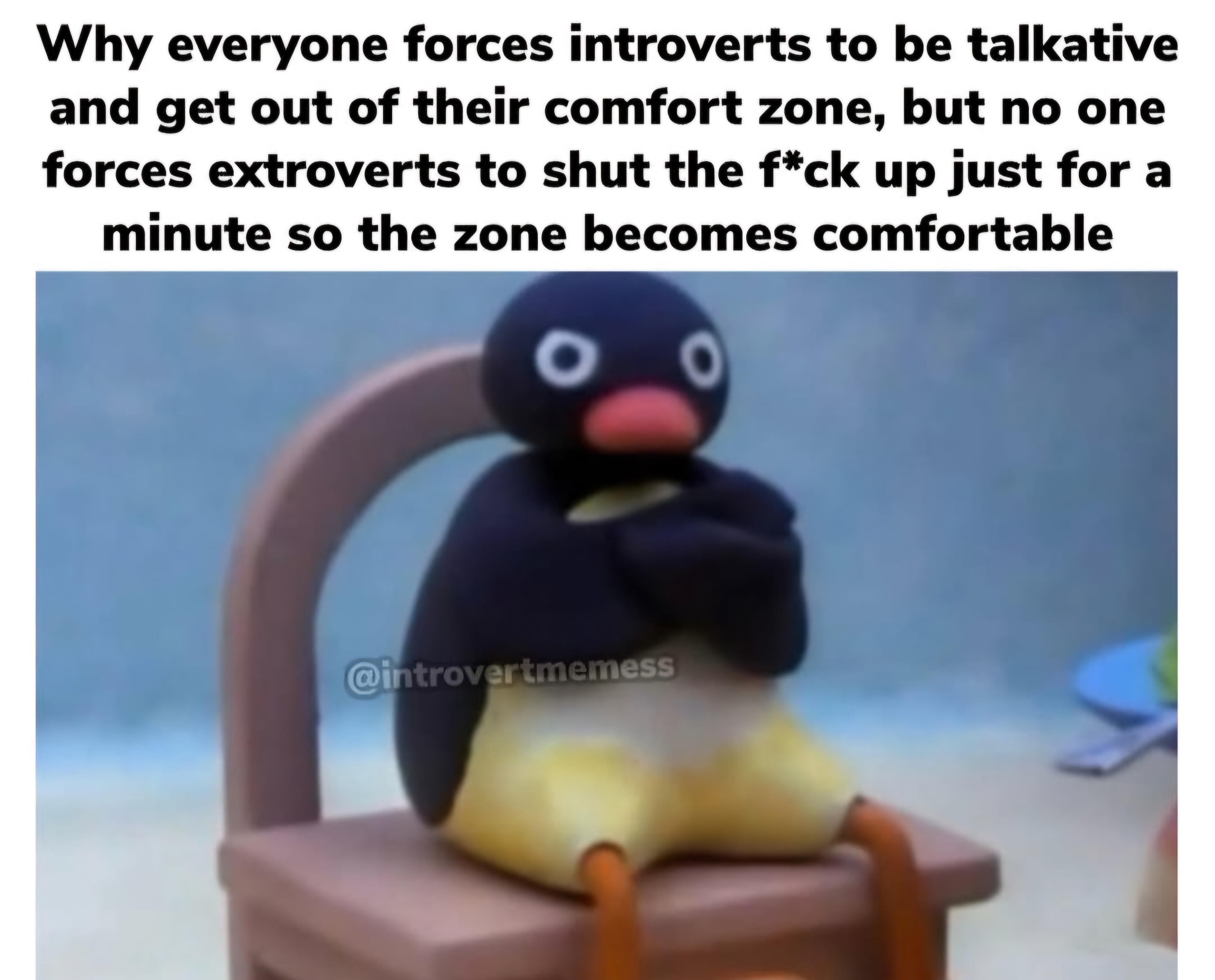 Like wtf? Stop trying to change and “fix“ me. I don’t want to be an extrovert, im sick of people treating introverts as broken