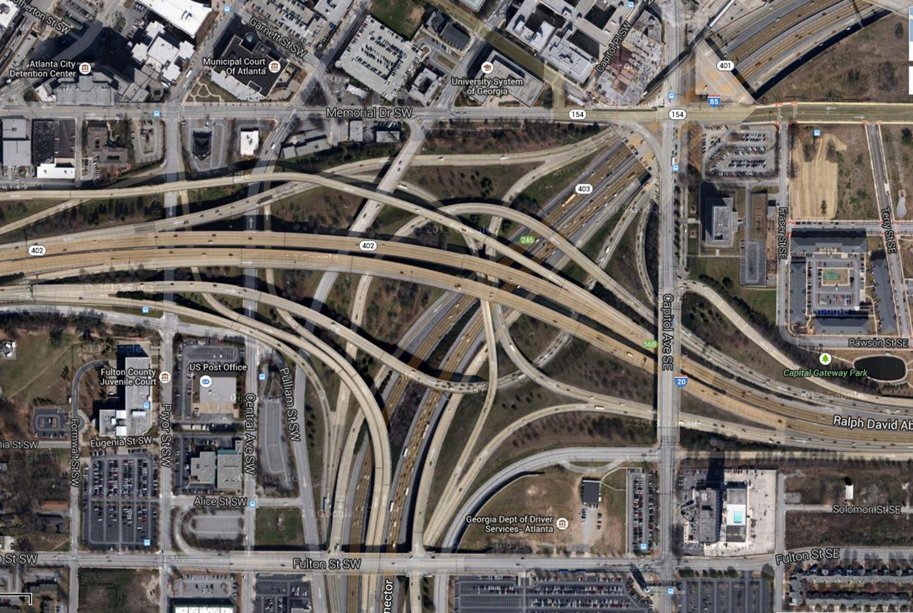 Cars are merging there in 6 distinct points. They may need to merge up to 5 times to leave the collider. It’s anything but efficient. Also, not every street can be reached from every street.