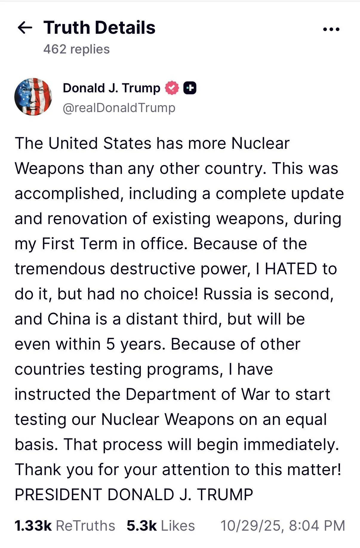 Source: https://truthsocial.com/@realDonaldTrump/posts/115460423936412555