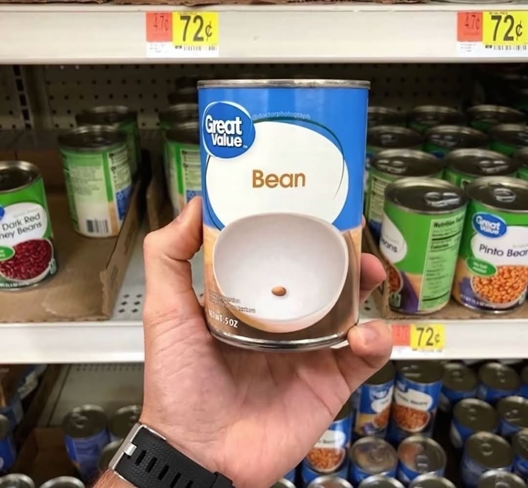 That’s the most plausible conclusion. If it’s a normal size bean, the rest of the can is bean juice. And the can says BEAN not bean juice.