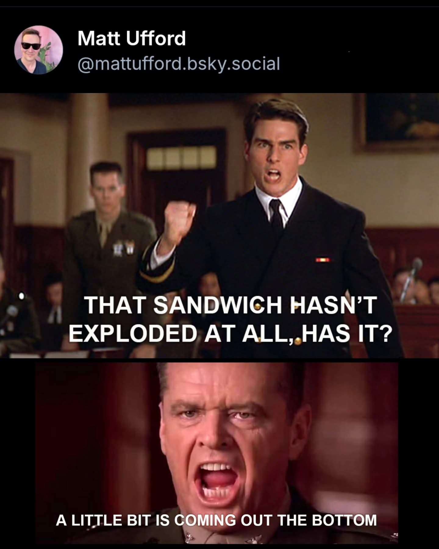 That’s a really good point. I hope he gets a medal for injury in the line of duty with a big, televised ceremony and lots of sandwich puns.