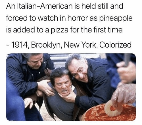 I was not expecting to get into pineapple pizza so much as an adult. First of all, there aren’t many pizzas I’d turn down anyway. But pineapple is fucking amazing. The sweetness and acidity marries perfectly with rich, melty cheese, just like marinara does. And I beg to differ on the garlic: I like a sauce that bites back.