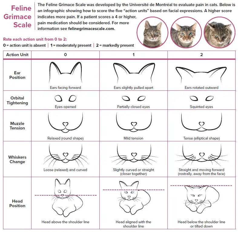Cat owners should learn the Feline Grimace Scale. It’s a way for vets to get a rough measure of how much pain a cat is in: