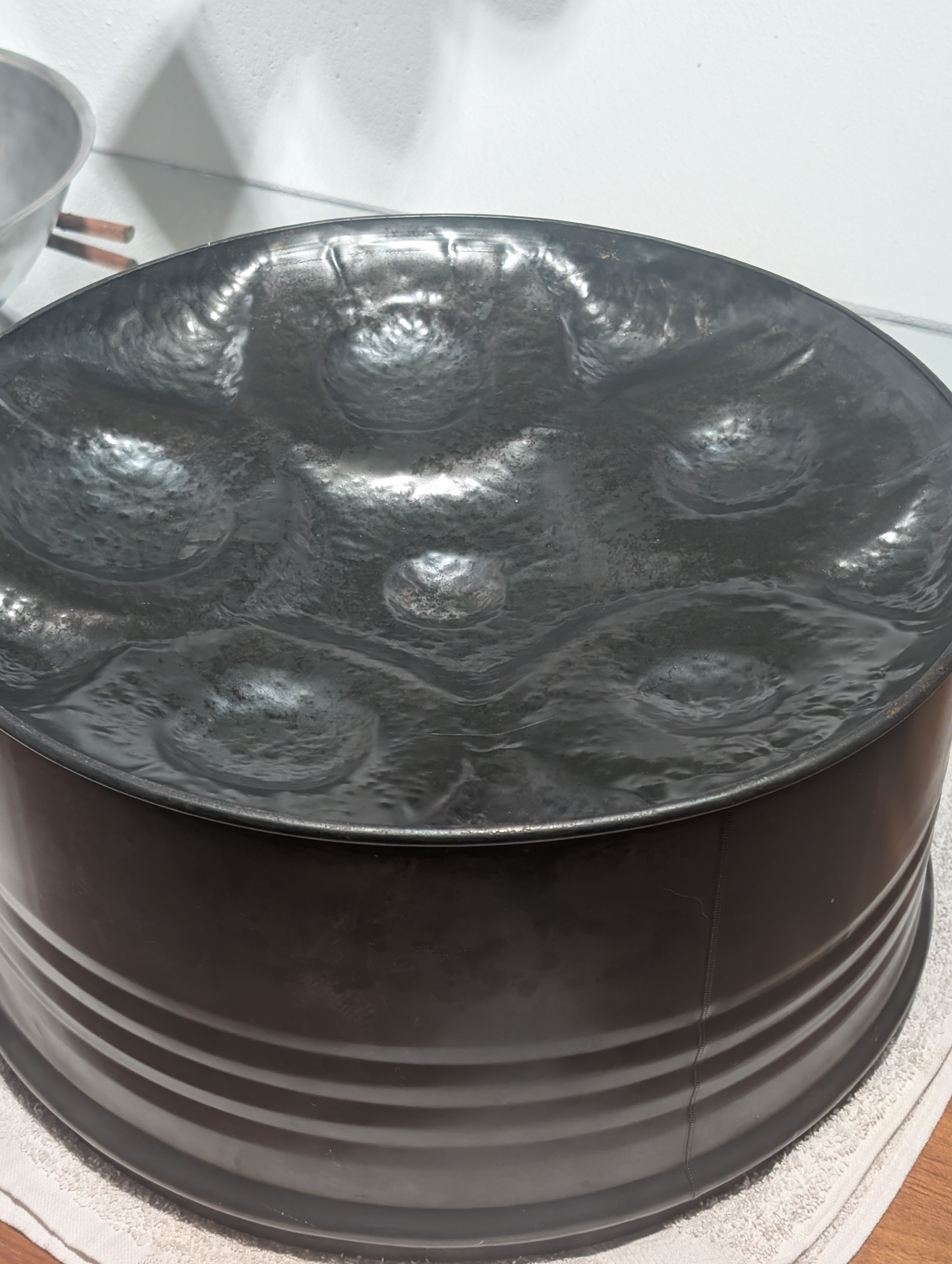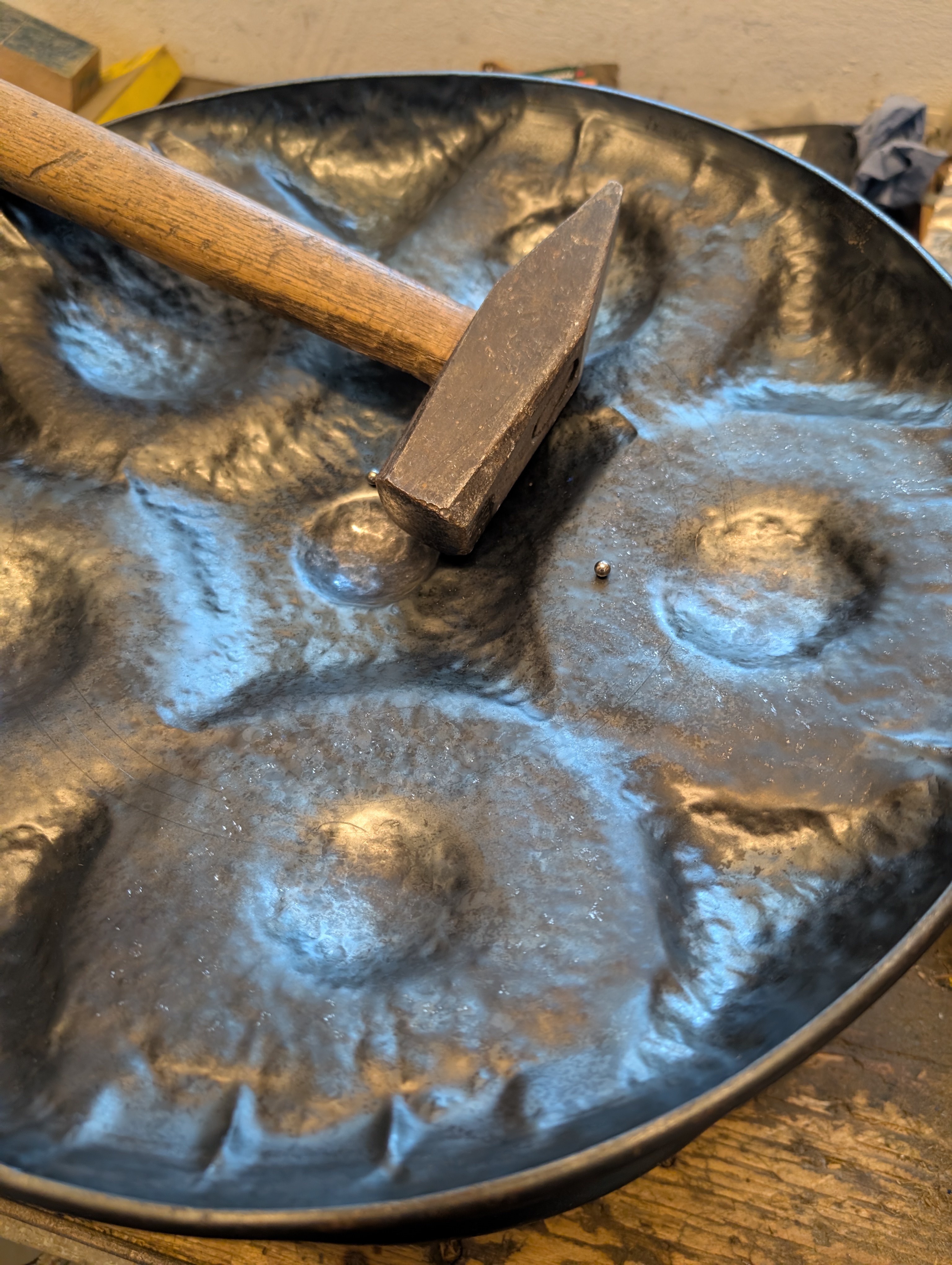 • Or, the steelpan needs to be tempered very specifically and then tuned by hammering on the note fields. Also very hard to do, and that’s the step I’m currently struggling with 😬
