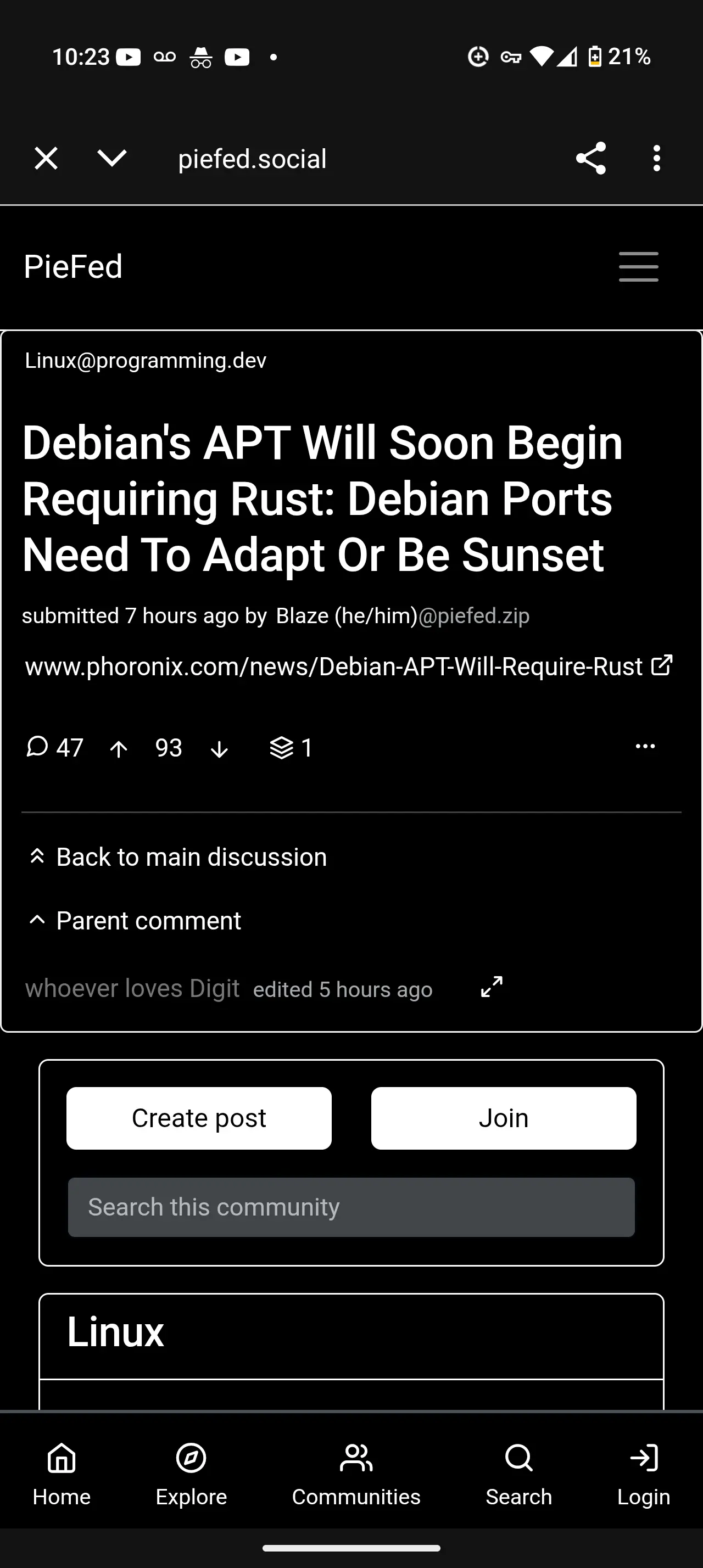 So this link shows a comment for you, not just a blank space? https://piefed.social/post/1458050/comment/8784509#replies