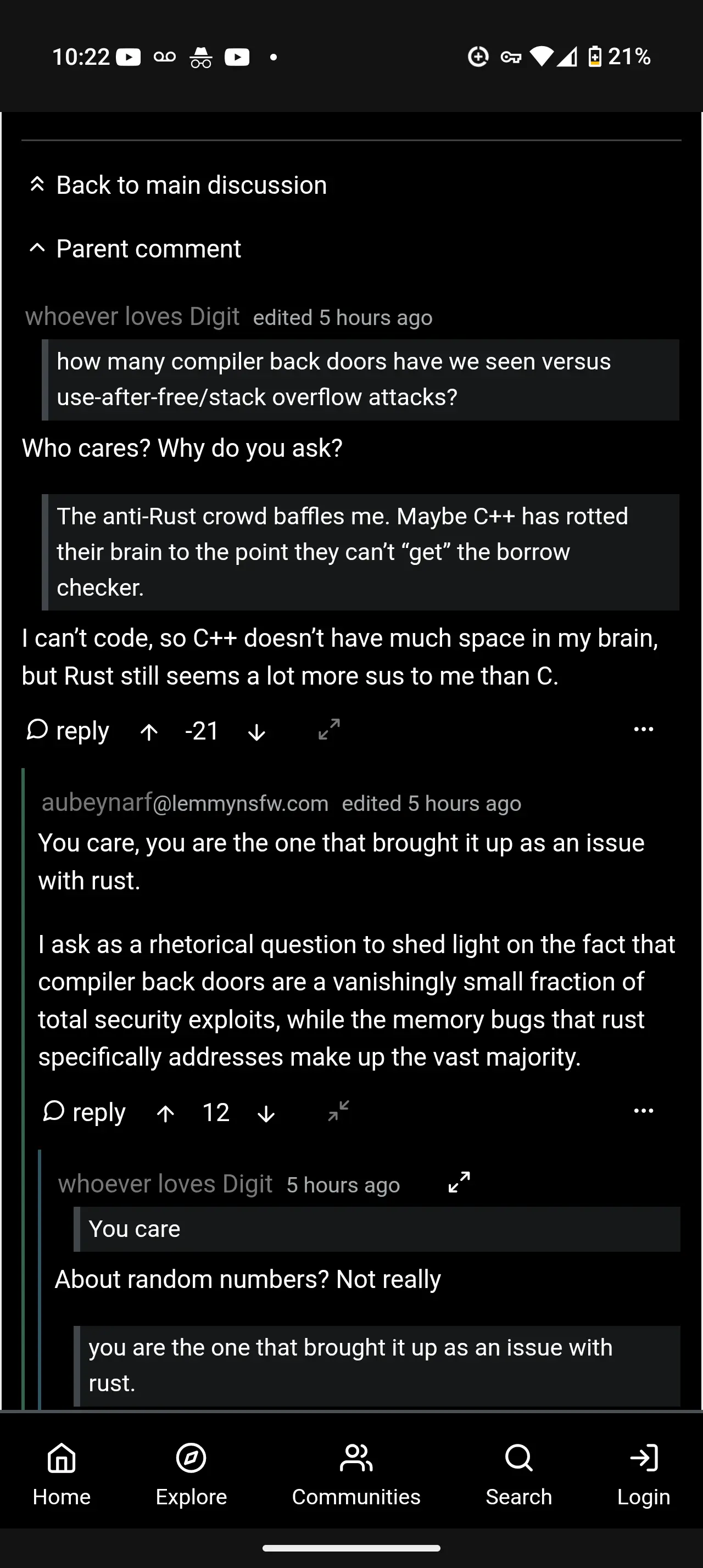 If you click the link, it’s blank, yet it has a “parent comment” link that leads to where I was replying